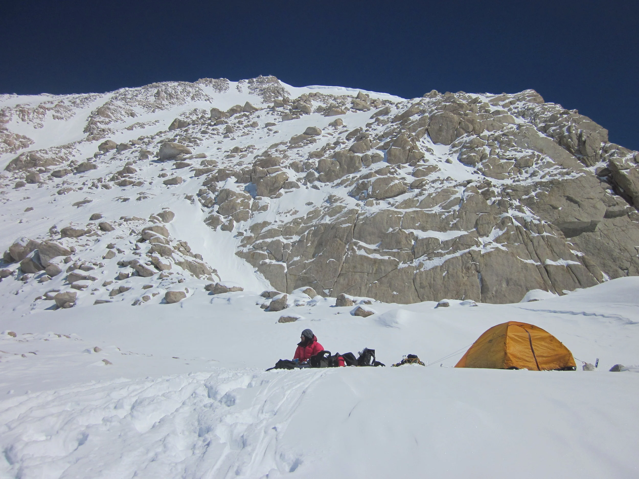 By 3pm Konstantin suggested we go to bed and get rested up. I stayed outside, admiring the absolutely striking vantage point. I was just thinking how perfect everything was: the weather, the amount of food and fuel we had, our physical condition. The route was in gnar condition but we were strong enough to deal with that. A few minutes later Konstantin called to me. I replied; I thought he was worried because of the slick snow and steep dropoffs surrounding our bivy. He then called again "We have to go down."