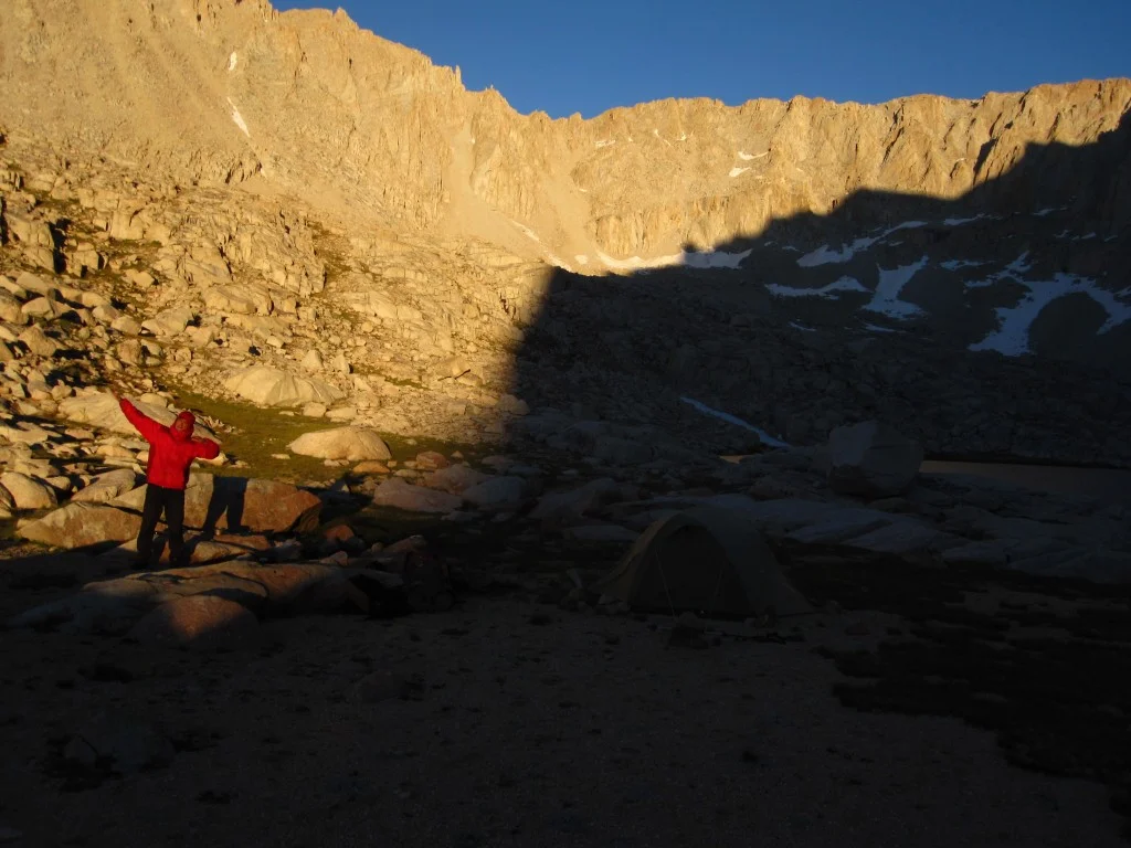 Scotty rested in the tent while I sat outside and stared at the array of Alpine spires and walls all around us. "I kinda want to run up something," I said, mainly just to let Scotty know that I was psyched, and not really expecting him to jump out of the tent yelling, "hell yeah, me too, lets go!" Instead he called me out and suggested, with a smug air of casualness, that I "run up" the East Face of Whitney (III, 5.7).
